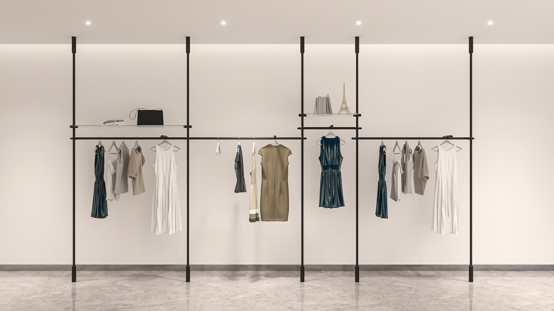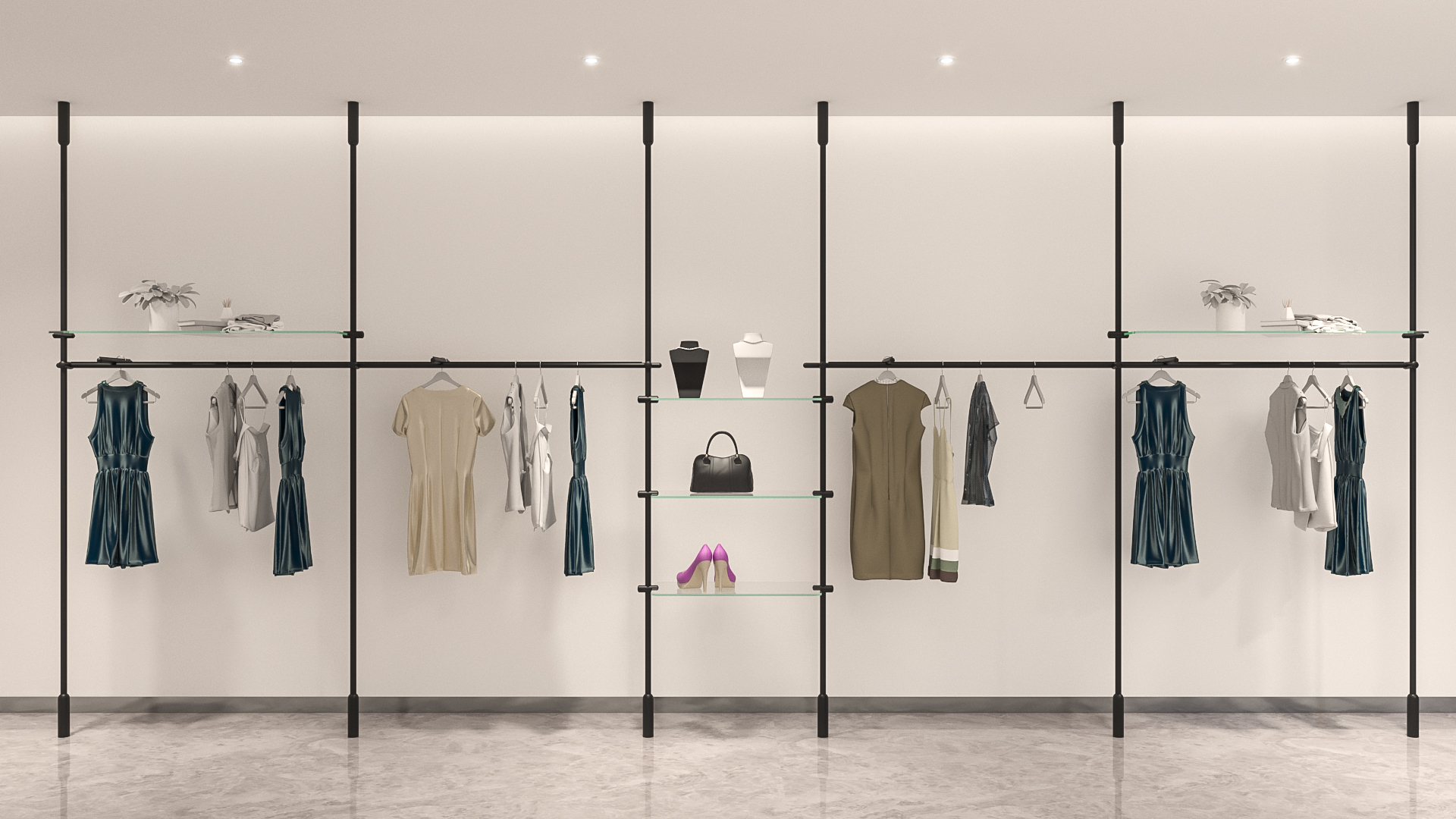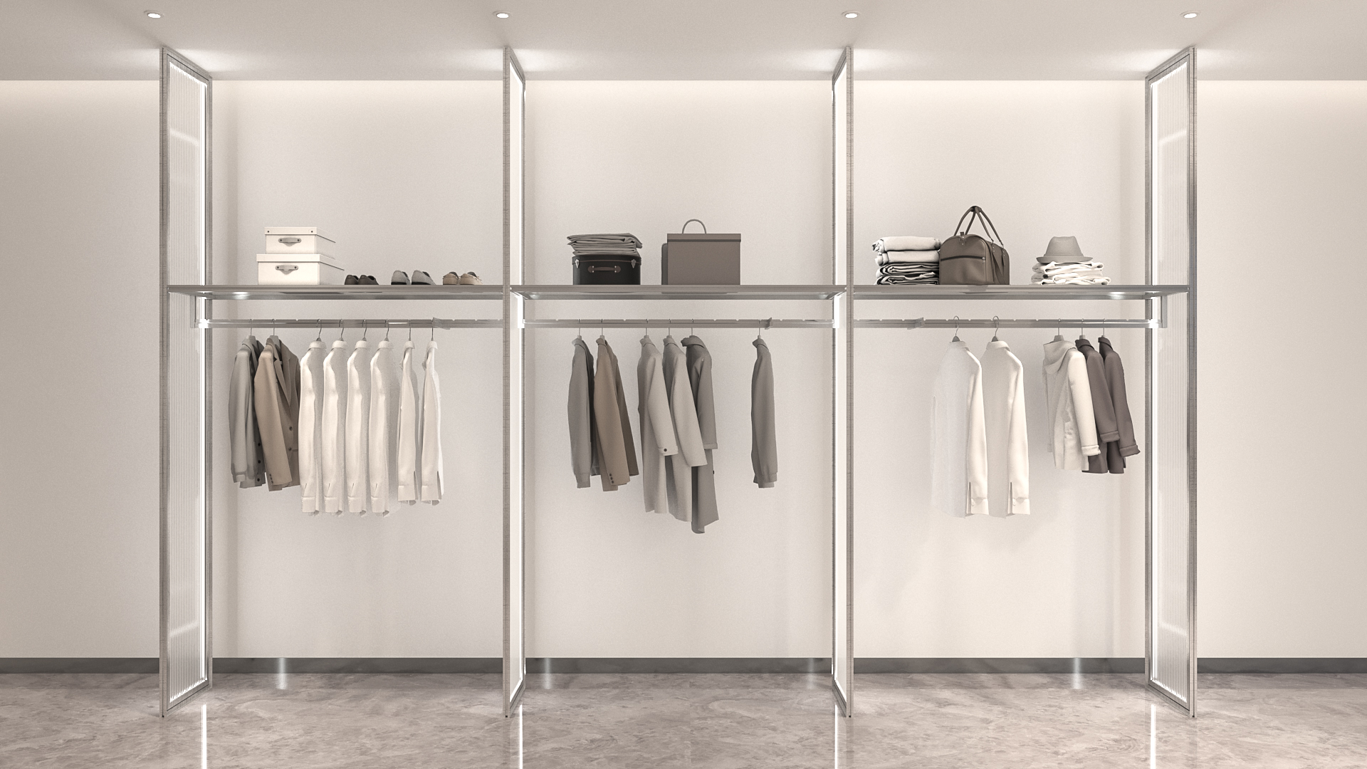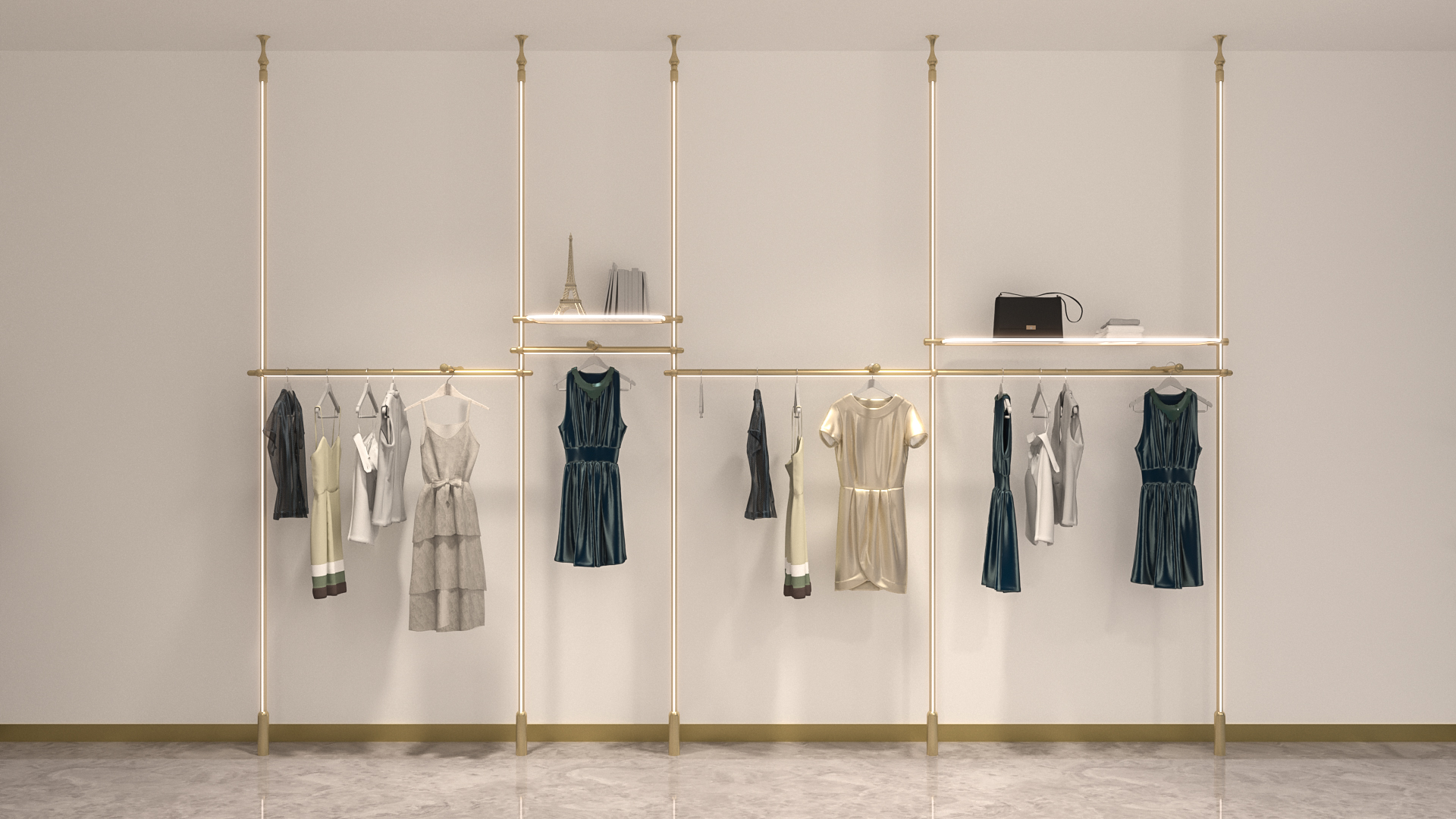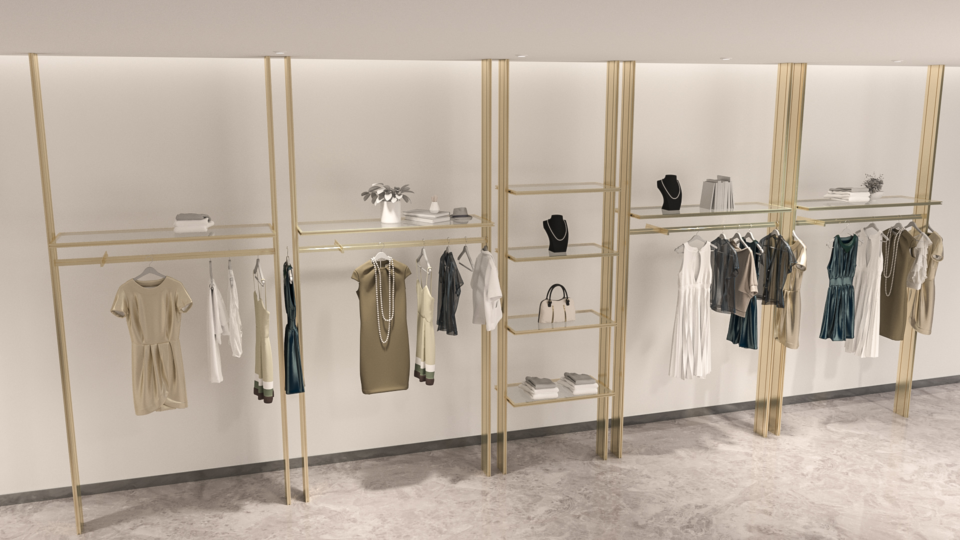Our Clothing Display Rack Series includes wall-mounted and freestanding designs made from precision-crafted metal structures with glass shelving. The wall-mounted racks integrate seamless LED lighting for a refined visual presentation, while the freestanding units offer versatility in layout and positioning. Each rack can be customized in dimensions, finishes, and lighting configurations, ensuring a tailored fit for different display needs and spatial concepts. Designed for durability and modern elegance, every detail reflects precision and balance.
